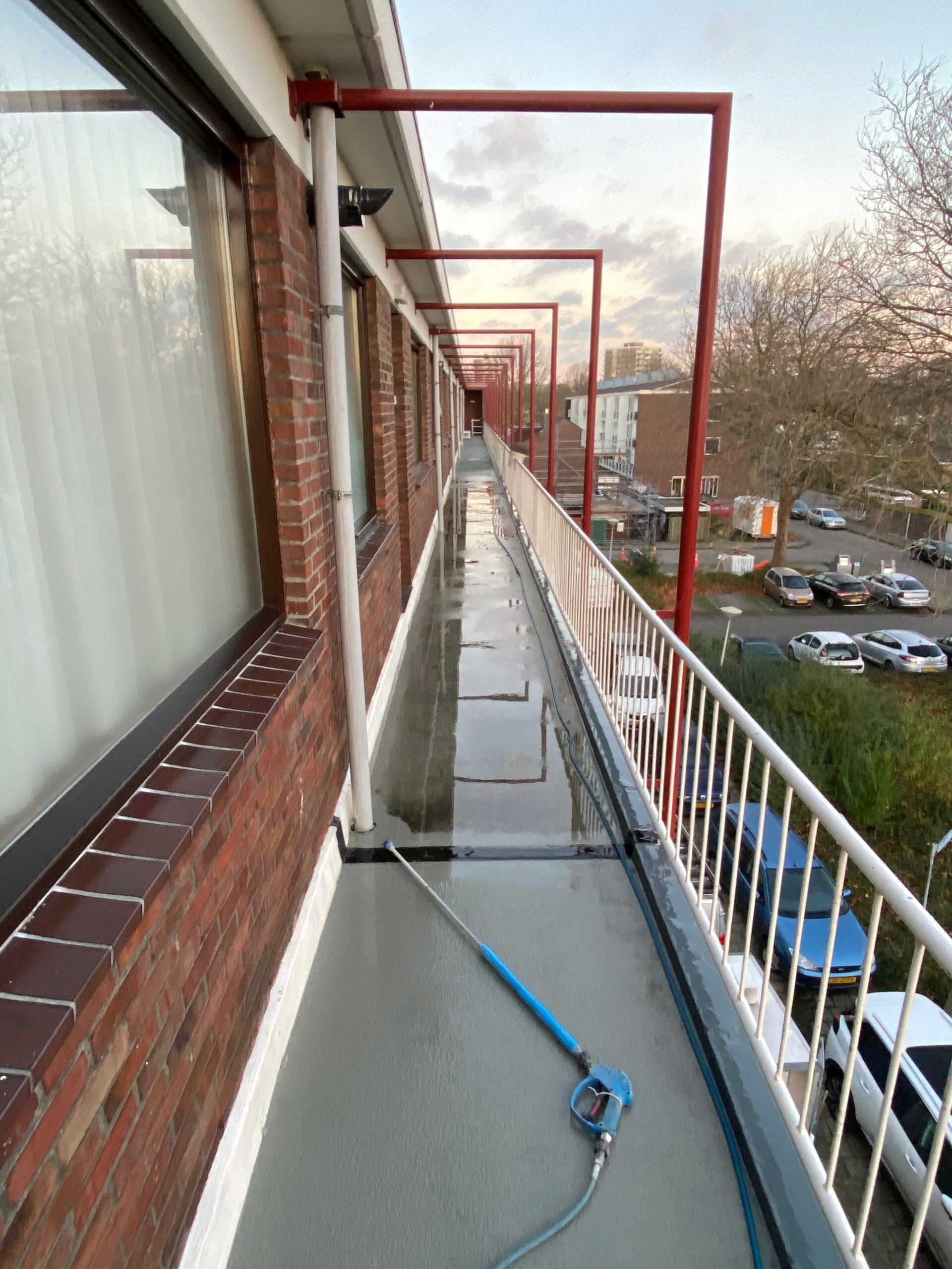 Het reinigen van oppervlakken met hoge of lage druk en verwarmd water.