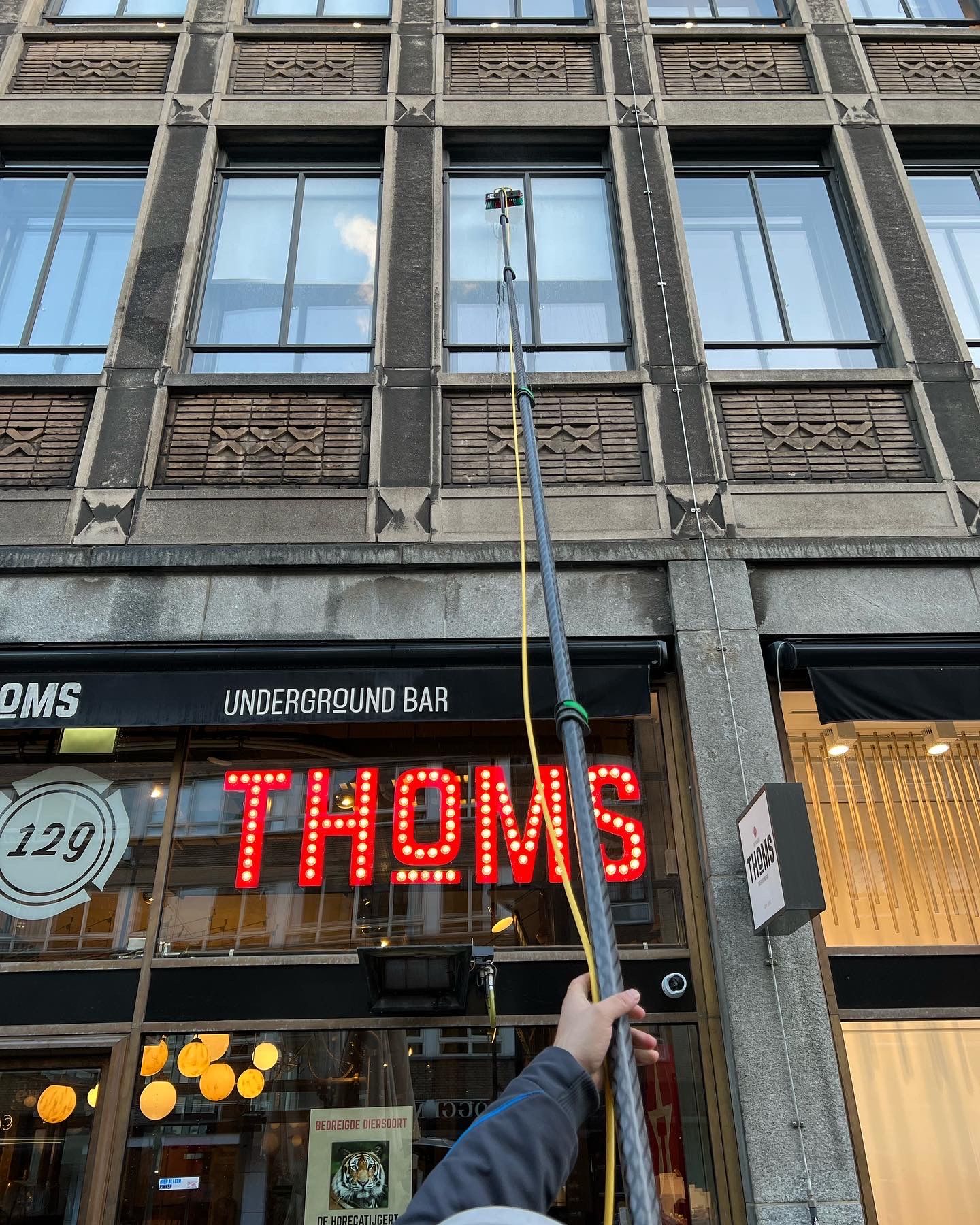 Afhankelijk van uw pand lappen we de ramen met handmateriaal, telescoopstelen, hoogwerkers of aanwezige gevelinstallaties.