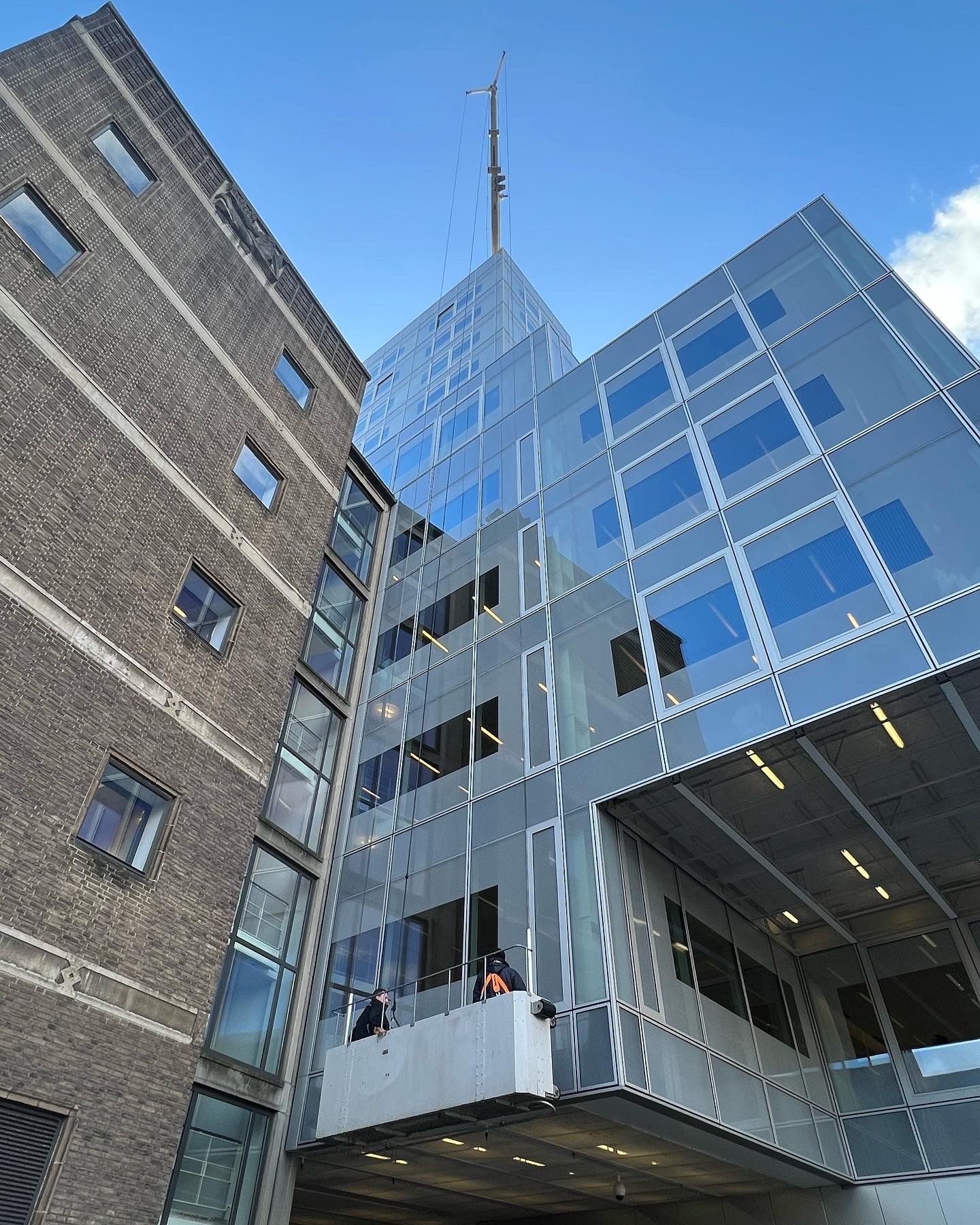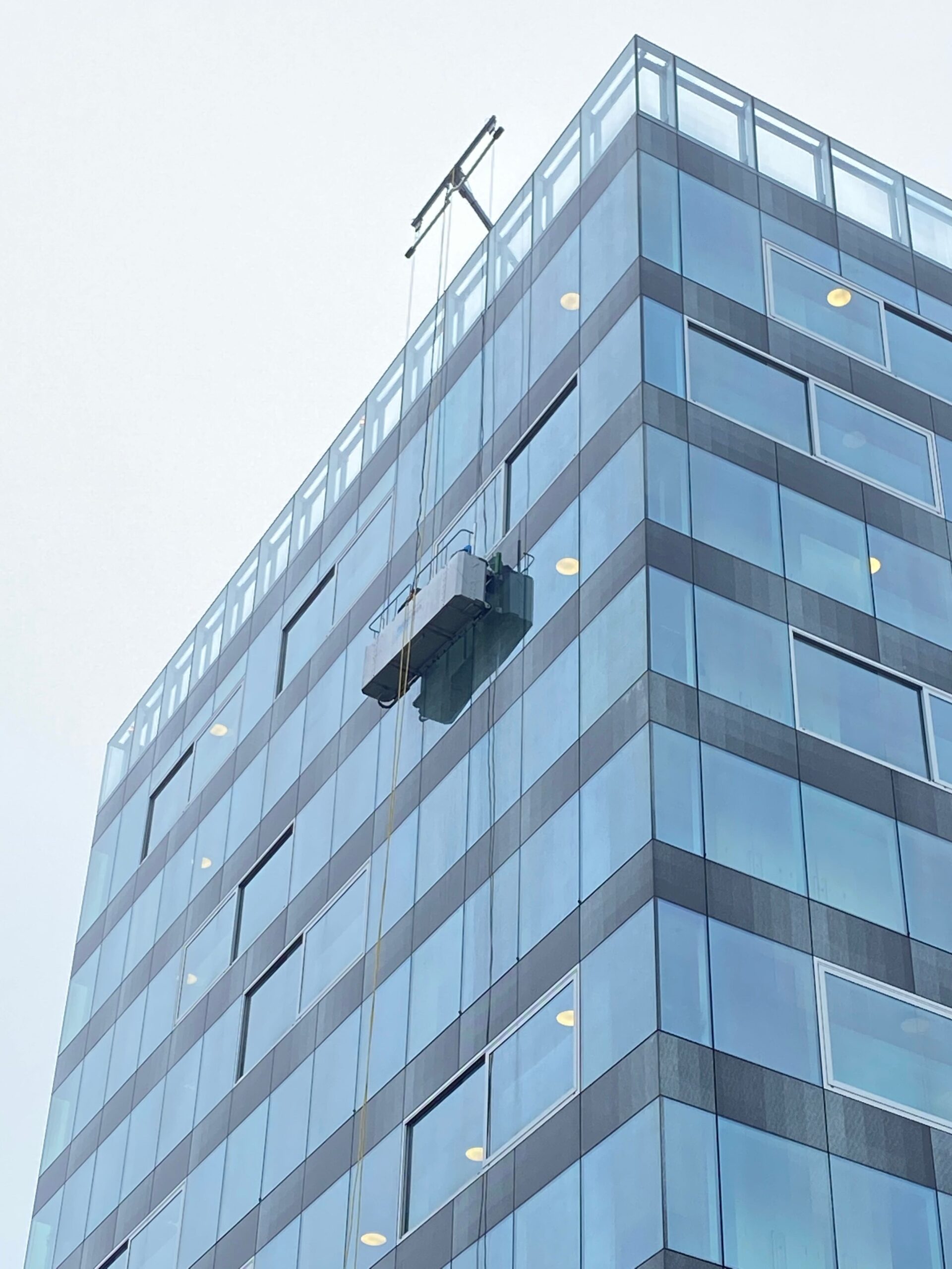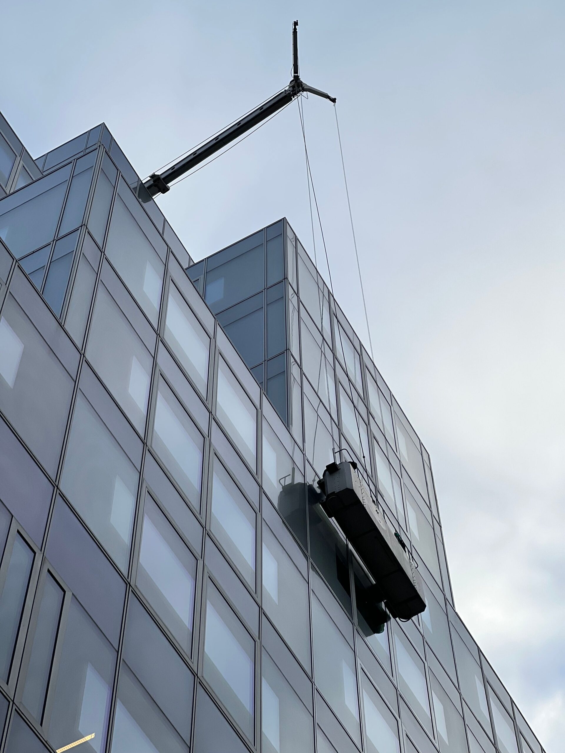 Wij hebben ruime ervaring met raambewassing vanuit gevelonderhoud installaties. Als er op uw locatie zo’n installatie aanwezig is, kunnen wij die bedienen.